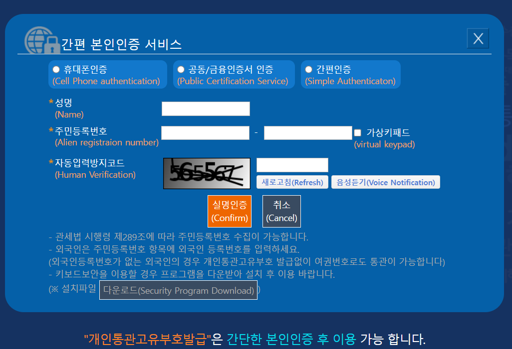 개인통관고유부호 신청 방법