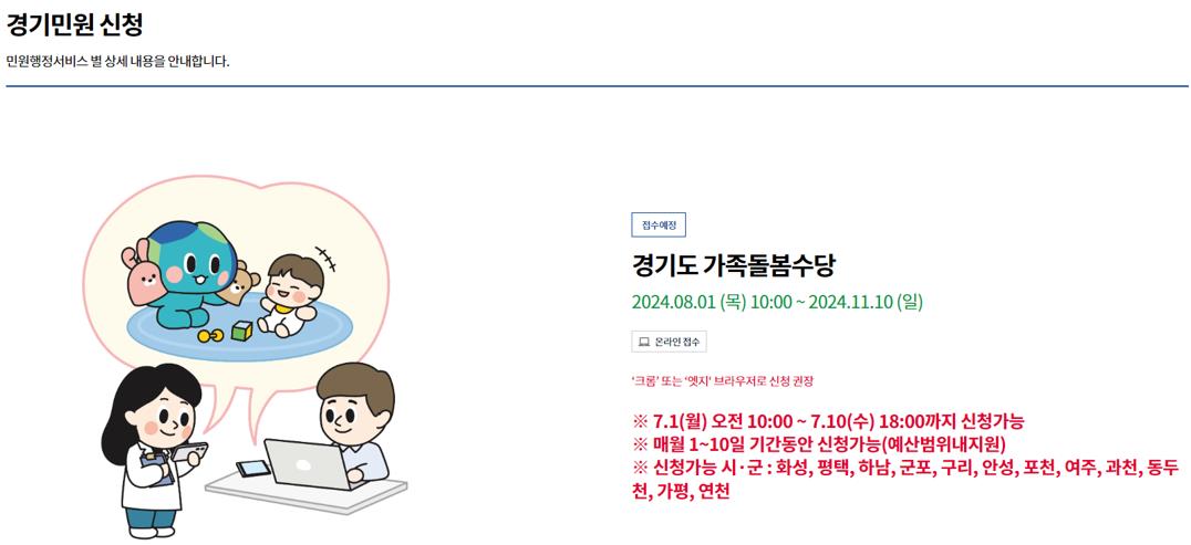 경기도 가족돌봄수당 신청은 다음과 같은 절차로 진행됩니다: