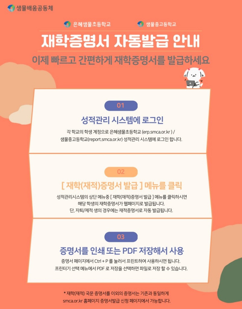 - 발급 후 개인정보가 포함된 파일 안전하게 보관