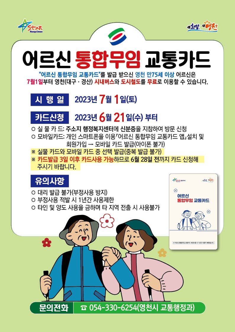 만 65세 이상이 되셨다면 주저하지 말고 가까운 발급 기관을 방문하여 노인 교통카드를 신청하시기 바랍니다. 간단한 절차로 평생 무료 교통 혜택을 누릴 수 있습니다.