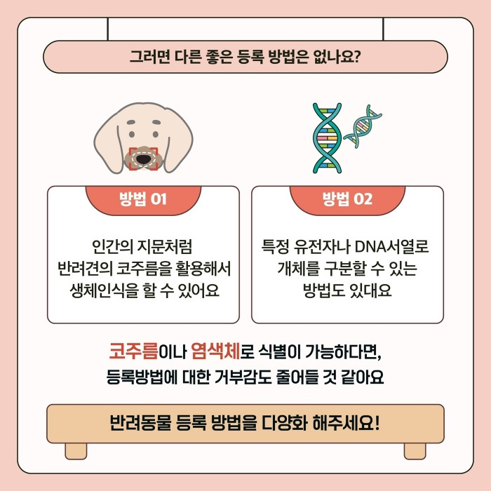 등록제를 통해 반려동물의 신원을 확실히 할 수 있어, 반려동물의 복지 향상에도 기여합니다. 유기나 학대 등의 문제 발생 시 책임 소재를 명확히 할 수 있어, 반려동물에 대한 책임감 있는 돌봄 문화 형성에 도움이 됩니다.