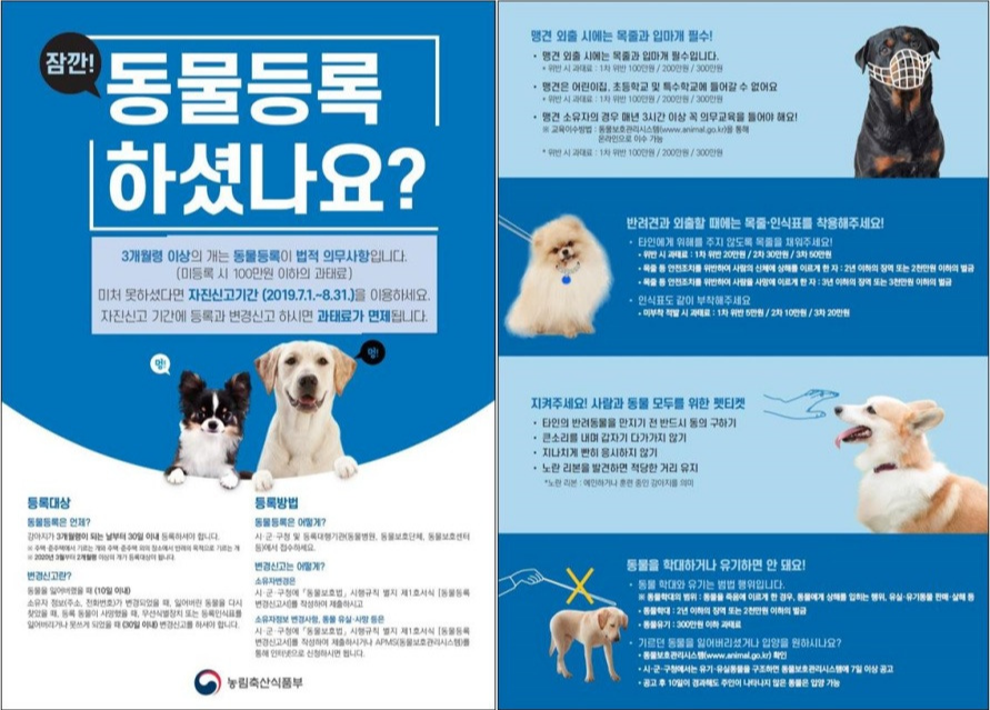 - 등록증 수령: 등록 완료 후 반려동물 등록증을 받습니다.