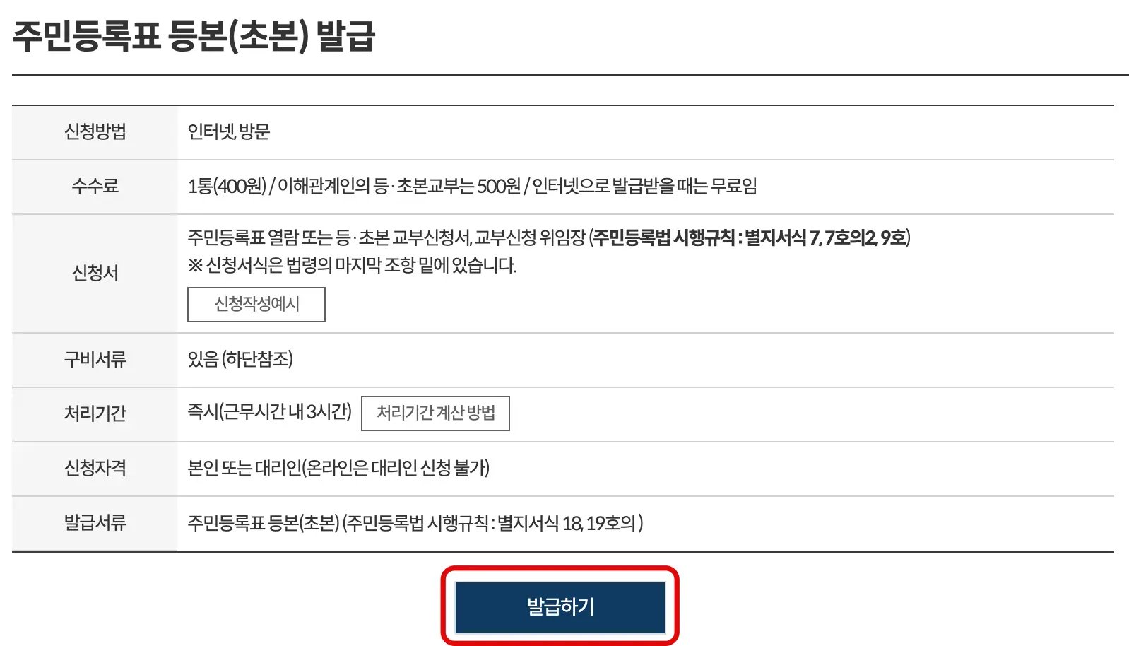 ① 발급 수수료: 온라인 발급 시 무료, 주민센터 방문 발급 시 수수료 발생