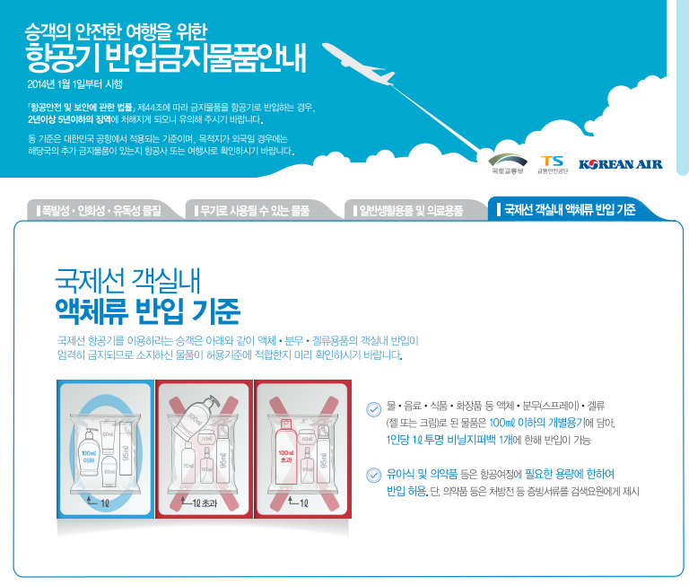 액체류 반입 규정: 100ml 룰을 기억하세요