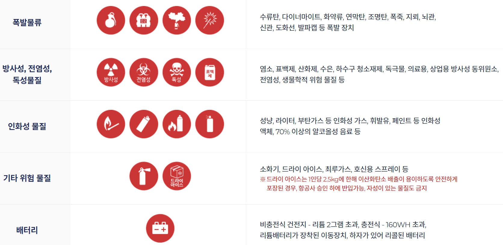 기내 반입금지물품 검색 바로가기