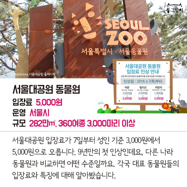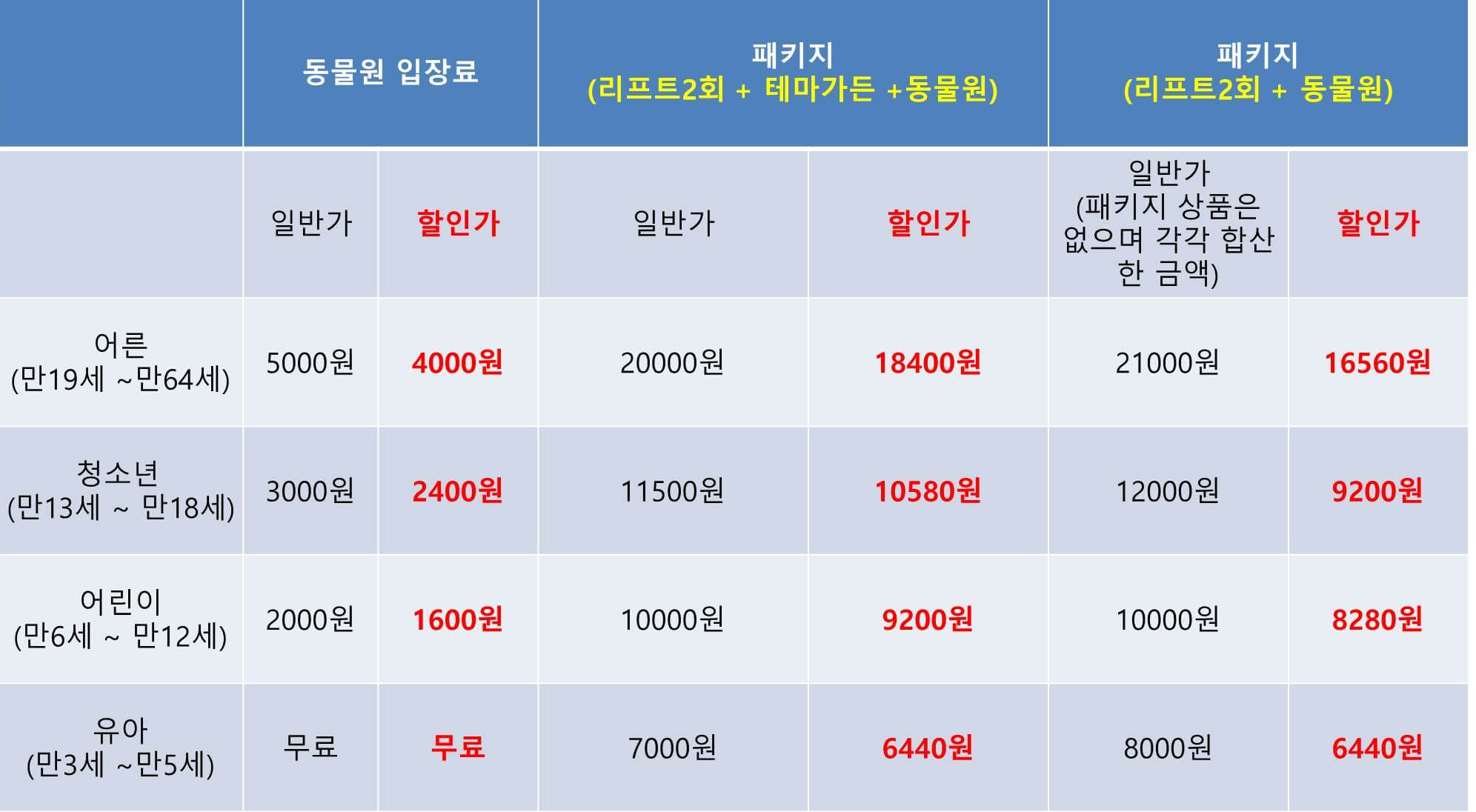 서울대공원의 입장료는 시설별로 다르게 책정되어 있습니다. 동물원과 식물원(테마가든)의 요금을 자세히 살펴보겠습니다.