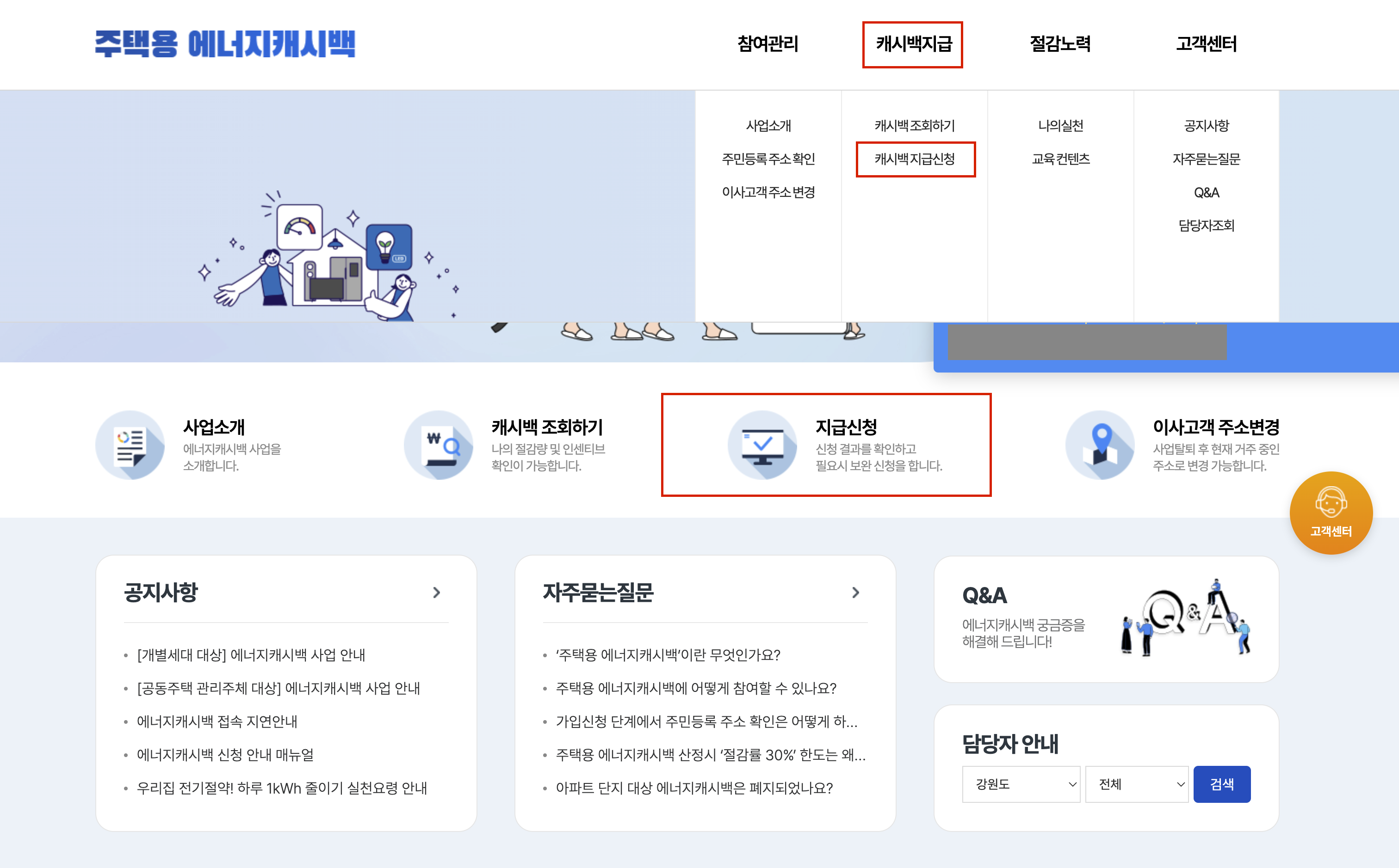 - 회원가입 또는 로그인 후 '에너지 캐시백' 메뉴 선택