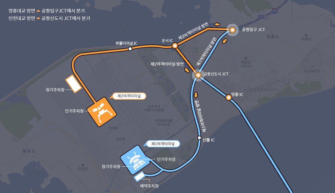 - 버스와 승용차(택시 포함)의 진입로가 분리되어 있으니 도로안내표지를 잘 확인하세요.
