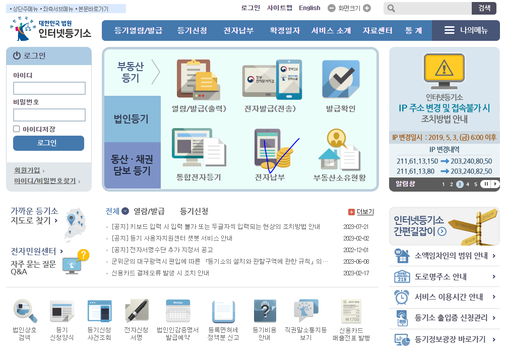 - 인터넷등기소(http://www.iros.go.kr) 이용
