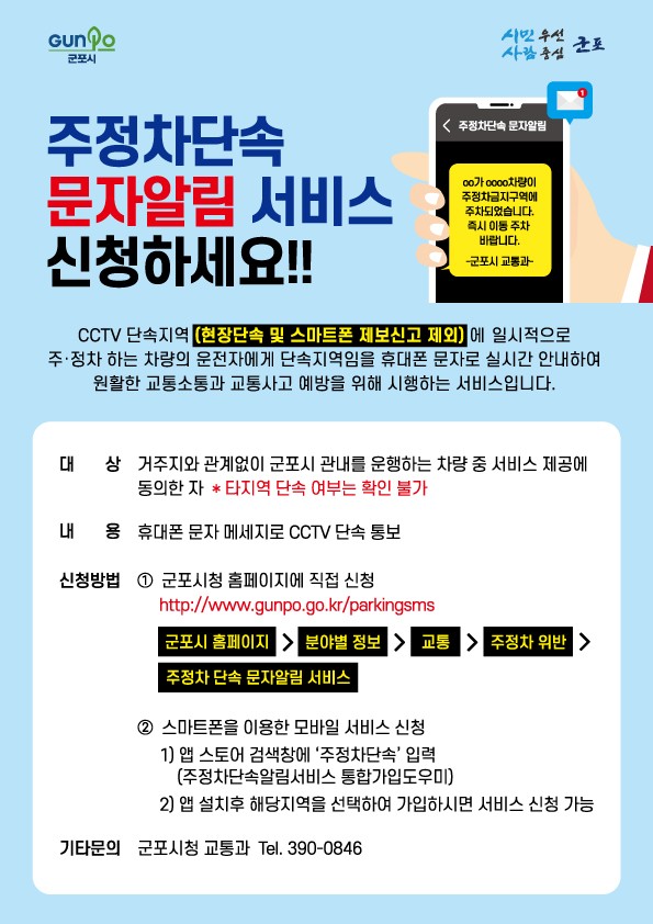 아직 주정차단속 문자알림 서비스를 이용하고 있지 않다면, 지금 바로 신청해보세요. 여러분의 일상이 한결 더 편안해질 것입니다. 안전 운전, 즐거운 주차 되세요!