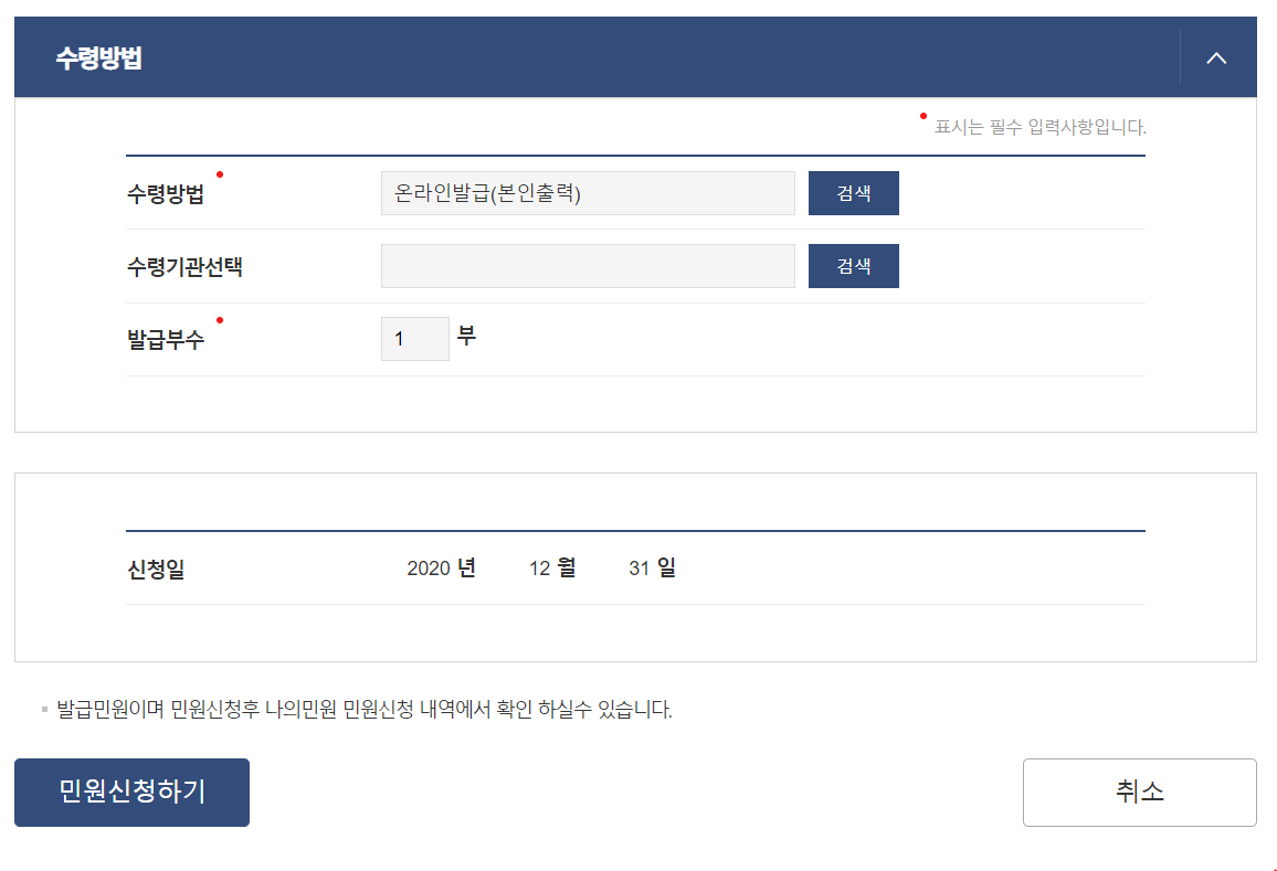 - 필요 정보 입력: 요구되는 개인 정보와 발급 목적 등을 정확히 입력합니다.