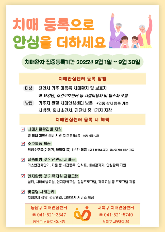 치매로 진단받았다고 해서 희망을 잃을 필요는 없습니다. 치매안심센터에서는 치매 환자와 가족을 위한 다양한 지원 서비스를 제공합니다. 인지 재활 프로그램, 치매 가족 교육, 돌봄 서비스, 치매 치료 관리비 지원 등 다양한 혜택을 받을 수 있습니다. 치매 환자를 위한 주간보호센터나 요양 시설 정보도 제공받을 수 있어 가족의 부담을 줄일 수 있습니다.