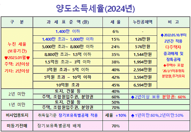2. 2024년 토지 양도세율 상세 분석
