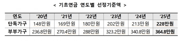 2025년 기초연금 수급자격, 선정기준액, 신청방법에 대해 상세히 알아보겠습니다. 노인 단독가구 월 소득인정액 228만원, 부부가구 364.8만원 이하면 기초연금을 받을 수 있으며, 다양한 혜택과 지원 내용을 확인하실 수 있습니다.