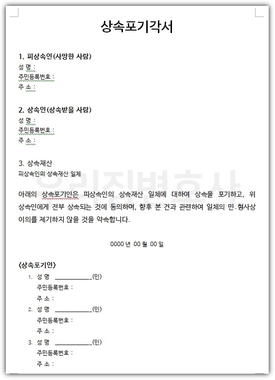 3. 상속포기 신청서 작성