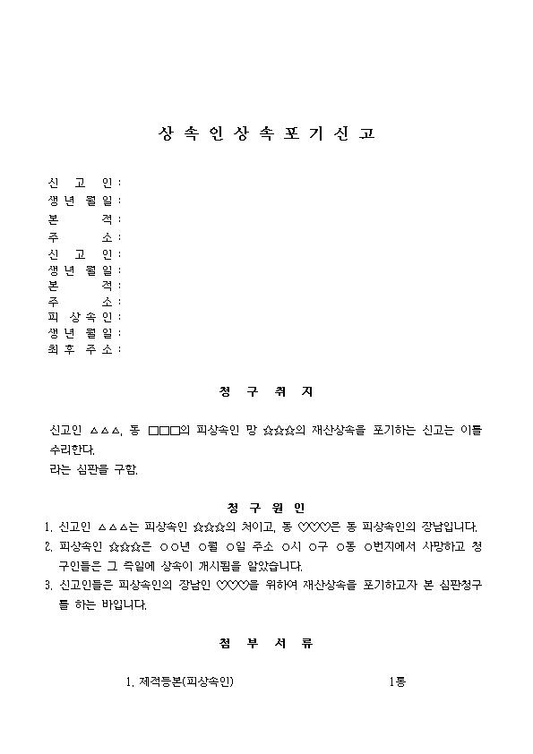 • 상속포기신고서 (법원 양식)
