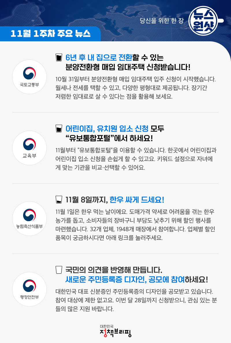 - 통합 온라인 포털 개통: 11월 01일 (금) 09시부터